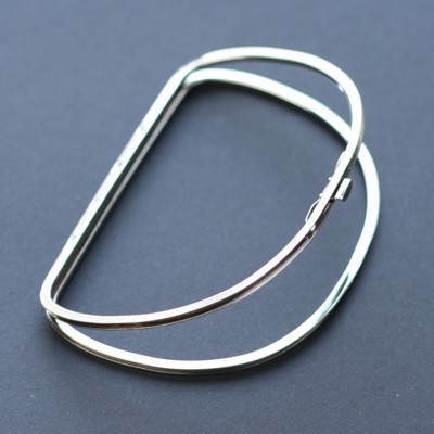 Kovový rámeček na manikůru ve tvaru půloválu. Vyrábí se v různých velikostech. Na fotografii je v otevřeném stavu. Dva půloválné rámečky jsou spojené panty. Zavírají se na zaklapávací mechanismus. Povrchové úpravy jsou dle přání a požadavků zákazníka.