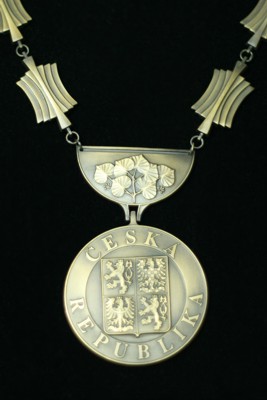 Insignie je medaile se státním znakem na závěsu, který je přidělaný na kovovém řetězu. Skládá se z medaile, závěsu a článků řetězu, eventuelně stuhy. Medaile je o průměru 80mm. Uprostřed níž je vložený státní znak České Republiky a po jejímž obvodu se nachází nápis "ČEKÁ REPUBLIKA". Medaile je opatřena "očkem", které spojuje danou medaili se závěsem. Závěs je tvořen z půlkruhu, uprostřed najdeme lipové listy, jako jeden ze symbolů České republiky. Závěs je níže opatřen dvěmi výstupky, mezi které zapadne očko medaile. Provrtáním a následným vložením drátku se medaile se závěsem spojí. Dále má závěs nahoře po bocích 2 dírky na upevnění oček a následného řetězu. Řetěz se skládá z 19-i kusů článků, spojenými kroužky. Řětěz se dá také nahradit stuhou zvanou trikolora. V tom případě je místo dvou otvorů v bocích závěsu vyfrézován otvor po celé délce závěsu. Celá kompletně spojená medaile se opískuje, načerní a následně ručně setře pro efekt staré úpravy mosazi.