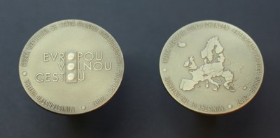 Oboustranná medaile o průměru 60mm. Na přední straně se nachází logo pro vstup do Schengenského prostoru "Evropou volnou cestou". Ze zadní strany jsou v profilu vyryté mapy Evropské unie s nápisy okolo. Medaile je vylisovaná z mosazného plechu. Medaile je následně opískovaná a načerněná. Černěný povrch je ručně stíraný a následně nalakovaný.